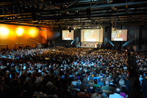 “Европ дахь хүн төрөлхтөн” хүндэт шагнал гардуулах ёслолын үеэр Дээрхийн гэгээн Далай лам айлдвар айлдаж буй нь... Герман улс, Пассау хот. 2010 оны 9 дүгээр сарын 21. Зургийг dalailama.com |
