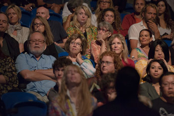 | 2015 оны 7-р сарын 6. Калифорни мужийн Ирвайн хот, Калифорнийн Их сургуулийн Брен төв. Дээрхийн гэгээн Далай лам оролцож буй уур амьсгалын өөрчлөлтийн талаарх хэлэлцүүлгийг сонсож буй үзэгчид. Зургийг: Тэнзин Чойжор / Дээрхийн гэгээн Далай ламын ажлын алба |