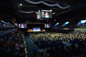 Өмнөд Методистийн Их Сургуулийн Мүүди Колизей танхимд болсон дараагийн арга хэмжээнд өмнө нь ерөнхийлөгч Бушийн Боловсролын сайдаар ажиллаж байсан Маргарет Спеллингс Дээрхийн гэгээнтнийг 5000 орчим үзэгчдэд танилцуулав.