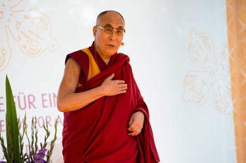| Дээрхийн гэгээн Далай лам 2015 оны 7 дугаар сарын 12-ны өдөр ХБНГУ-ын Хессен мужийн Висбаден хотын Курпарк цэцэрлэгт хүрээлэнд айлдвар айлдаж буй нь. Зургийг: Мануэль Бауэр. |
