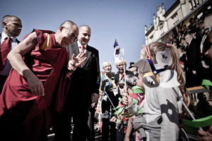 Дээрхийн гэгээн XIV Далай лам Вроцлав хотын захирагчийн хамтаар хэвлэл мэдээллийн төлөөлөгчидтэй уулзаж буй нь... Польш, Вроцлав. 2010 оны 9 дүгээр сарын 23. |