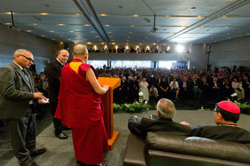 Дээрхийн гэгээн Далай лам Мексикийн Понтифик Их Сургуульд үг хэлж буй нь… 2013 оны 10 дугаар сарын 12. Мексик улс, Мехико хот. Гэрэл зургийг Оскар Фернандес. |