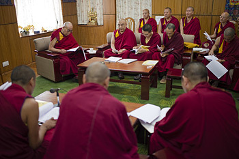 4 хоногийн турш Дээрхийн гэгээн, 3 сургуулийн нэр хүндтэй эрдэмтдийн багийн хамт Ганжуур, Данжуур судрын эшлэлүүдийг үндсэн эхэд оруулах уу эсвэл зүүлт тайлбар болгох уу гэдгээс эхлээд танилцуулгын тодорхой цэгүүдэд ямар утга өгөх мөн өөр өөр нарийн нэр томьёог ашиглахын давуу, сул талуудын талаар маш идэвхтэй хэлэлцэв. 2, 3 дахь өдөр нь профессор Самдон ринбүүчи тэдэнтэй нэгдэж, энэтхэгийн сурвалж бичгүүдийн талаарх мэргэжлийн мэдлэгээ хуваалцсан юм. Жүдмэд дацангийн өмнөх хамба лам, гэвш Түтоп Далай ламын хувийн урилгаар оролцсон бол Намжил хийдийн багш нар ажиглагчаар оролцсон байна.